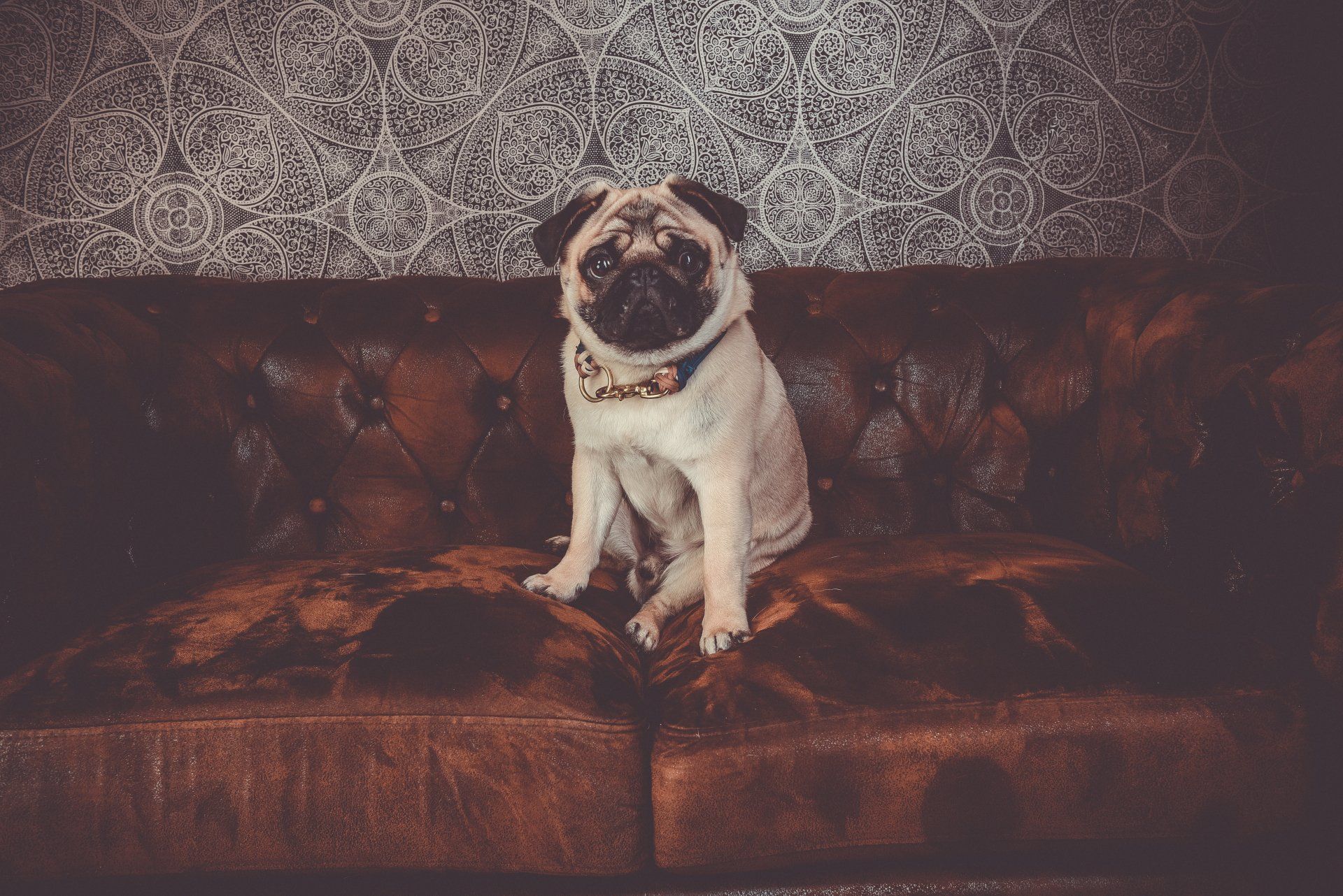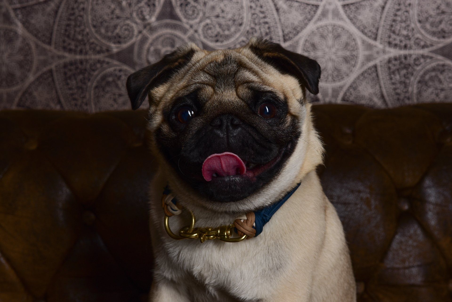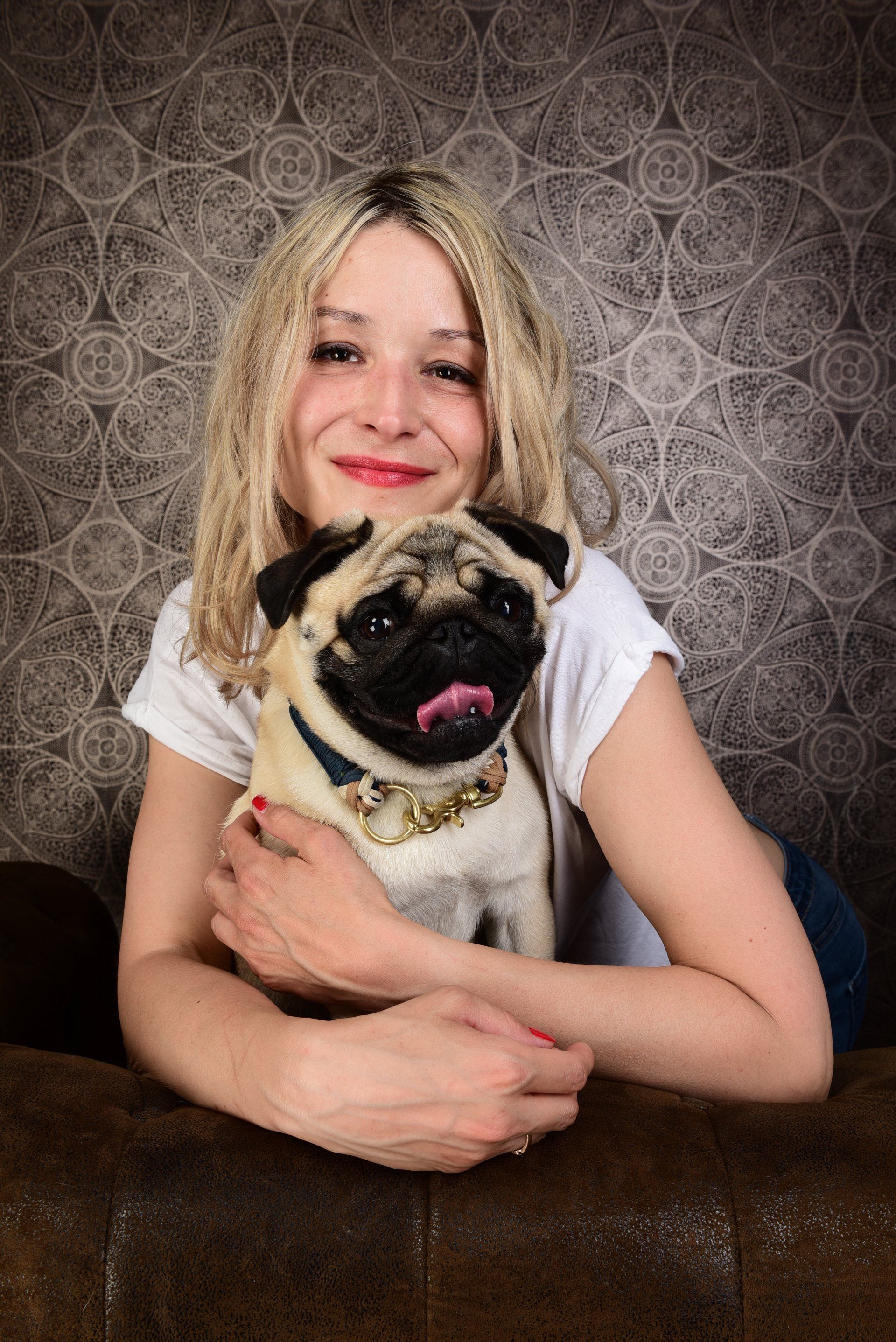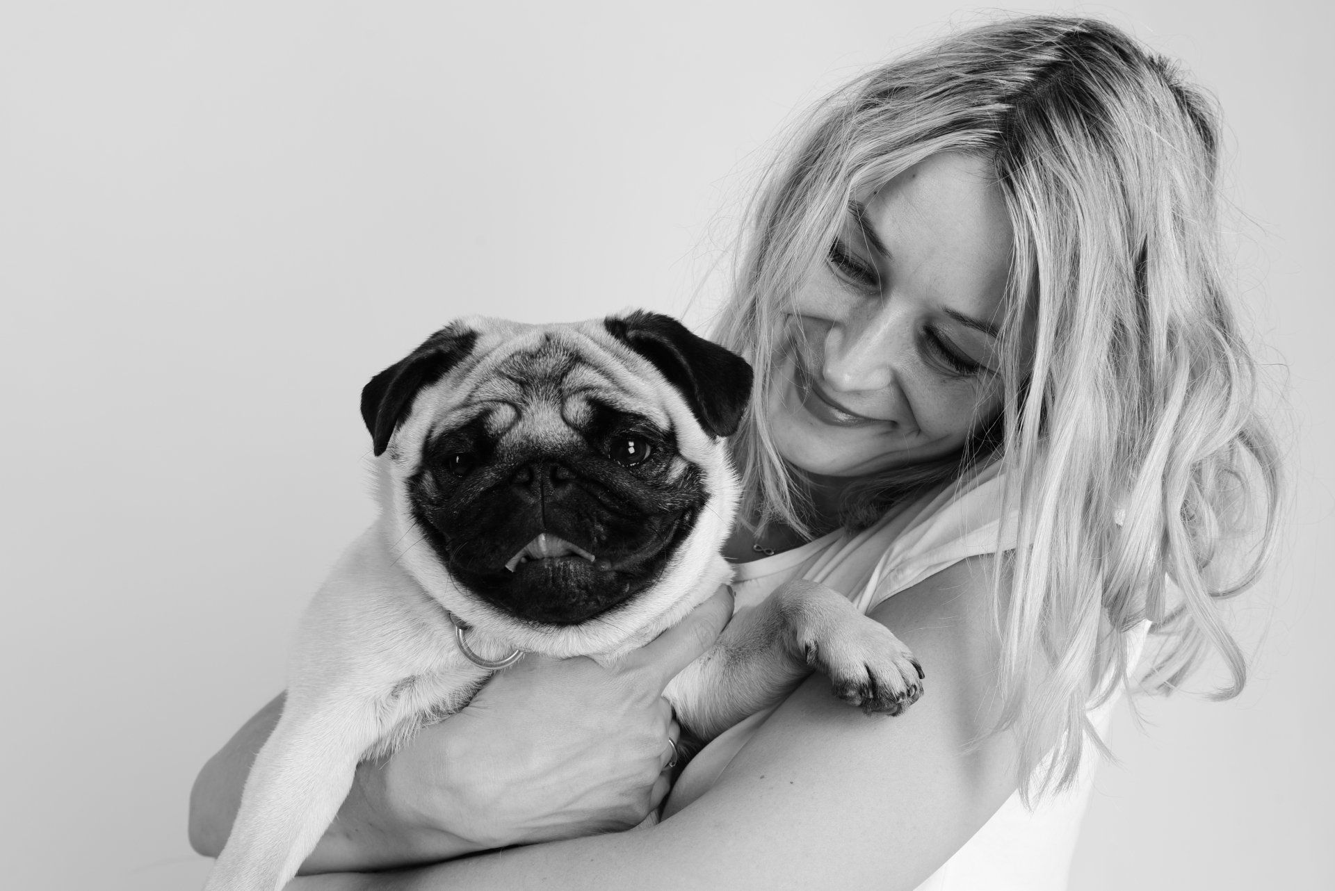 Begleitet werde ich von meinem Therapiehund in Ausbildung, Mops Oskar.
